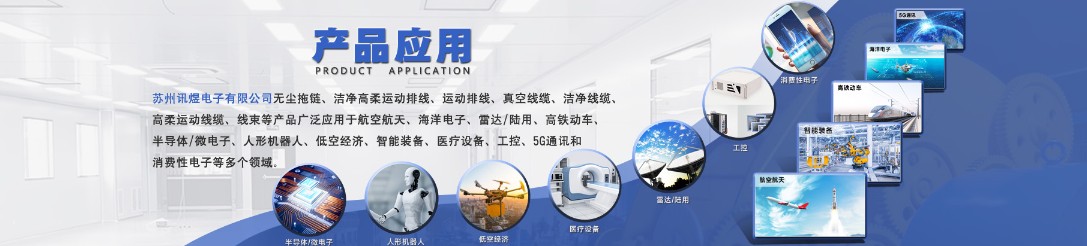 訊煜電子的產品及解決方案覆蓋半導體/微電子、航空航天、人形機器人、低空經濟、智能裝備、醫療設備、5G通信等十余個領域。在半導體制造中,其潔凈高柔運動排線支持光刻機等高精密設備運行;在顯示面板行業,高柔無塵拖鏈適配液晶顯示器產線;此外,產品還服務于海洋電子、高鐵動車、工業機器人等高端制造場景,形成跨行業技術賦能。