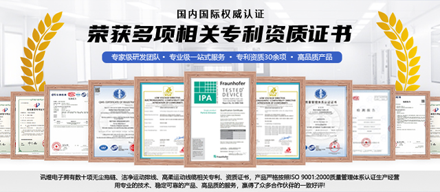 公司構建了涵蓋原材料篩選、制程管控到終端檢測的全鏈路質控體系,擁有先進的電子檢測設備。技術團隊核心成員具備15年以上行業經驗,自主研發的無塵拖鏈、潔凈高柔運動排線、真空線纜、高柔運動線纜已獲行業廣泛應用。目前持有江蘇省科技型中小企業、民營科技企業等稱號,并通過ISO 9001質量管理體系認證,確保產品從設計到交付的全程可追溯性。