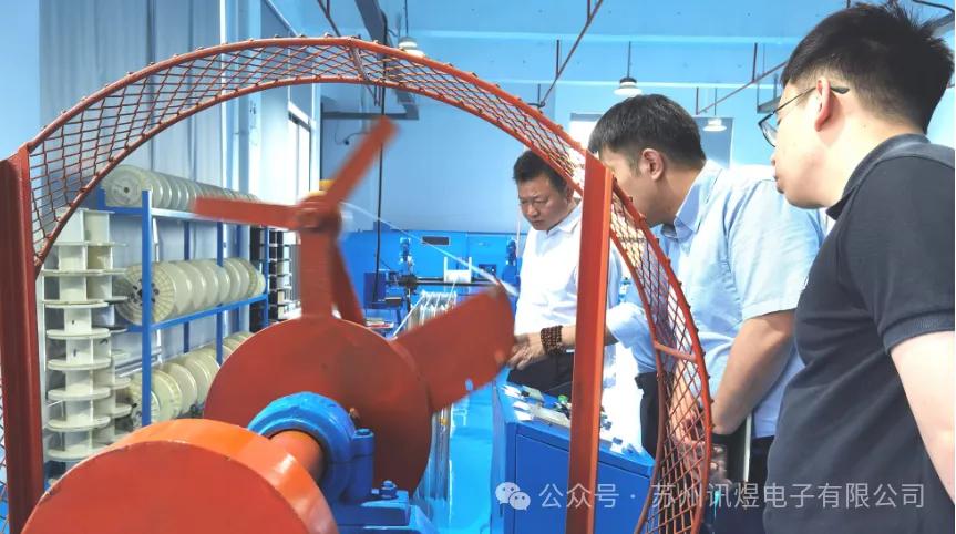 2024年6月3日下午,吳江經(jīng)濟(jì)技術(shù)開發(fā)區(qū)管委會(huì)副主任朱云根一行蒞臨訊煜電子參觀指導(dǎo),朱主任先后參觀了訊煜電子的線束集成車間、線纜生產(chǎn)車間和百級無塵拖鏈生產(chǎn)車間,每到一處都會(huì)仔細(xì)詢問,了解產(chǎn)品的特點(diǎn)、優(yōu)勢以及應(yīng)用前景。